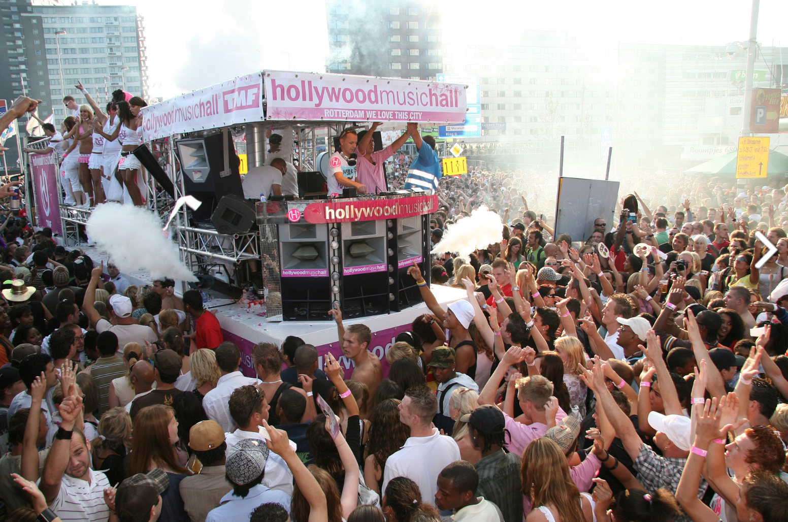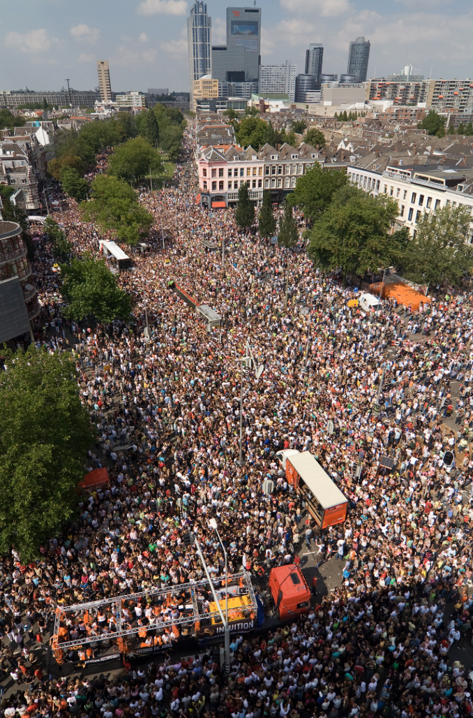 Event: Largest EDM Dance Parade in Europe. During the day 40 trucks drove through the city center representing trends in dance music.